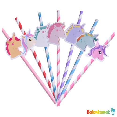 Vybrané balení obsahuje 10 kusů barevných papírových brček s jednorožci dle obrázku.